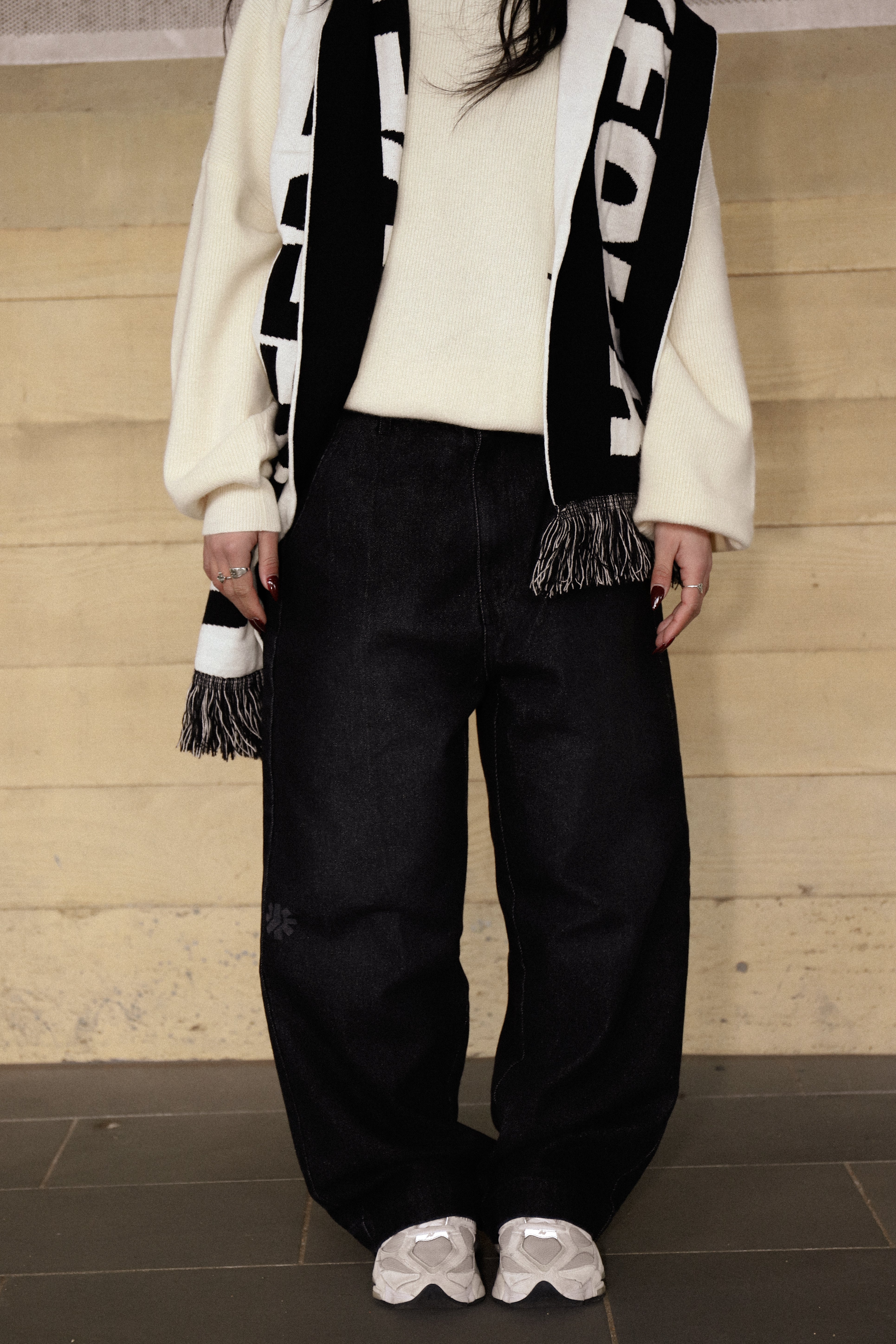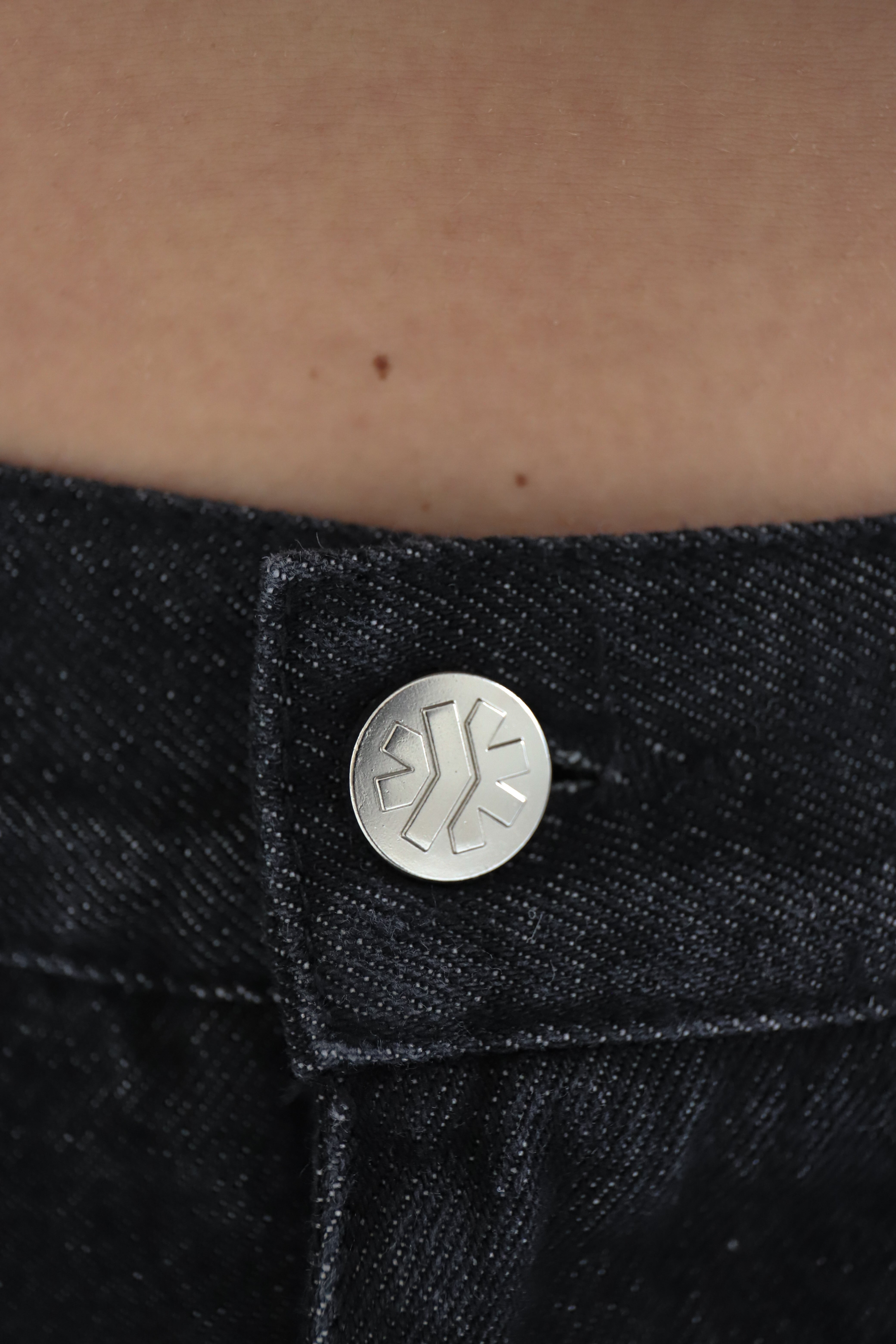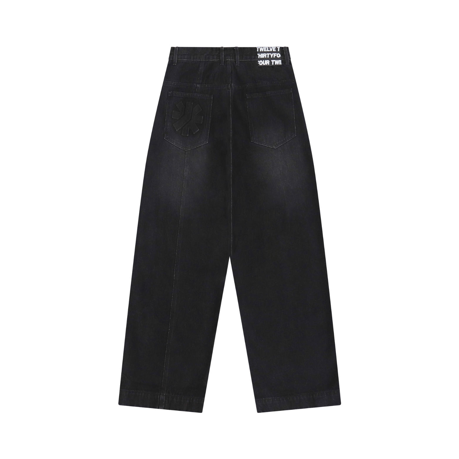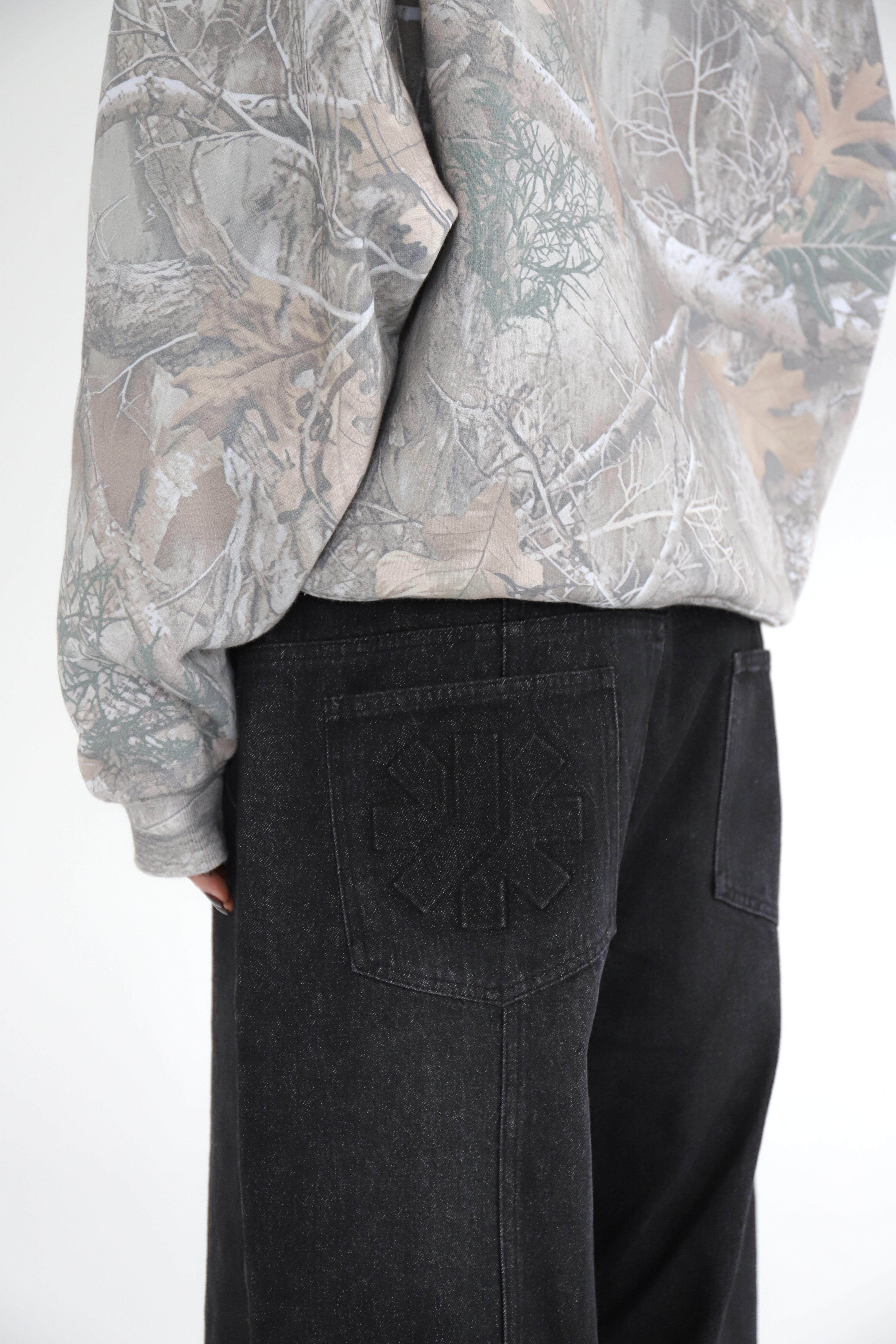 Features a burnout logo on front leg panel and signature embossed logo on rear pocket